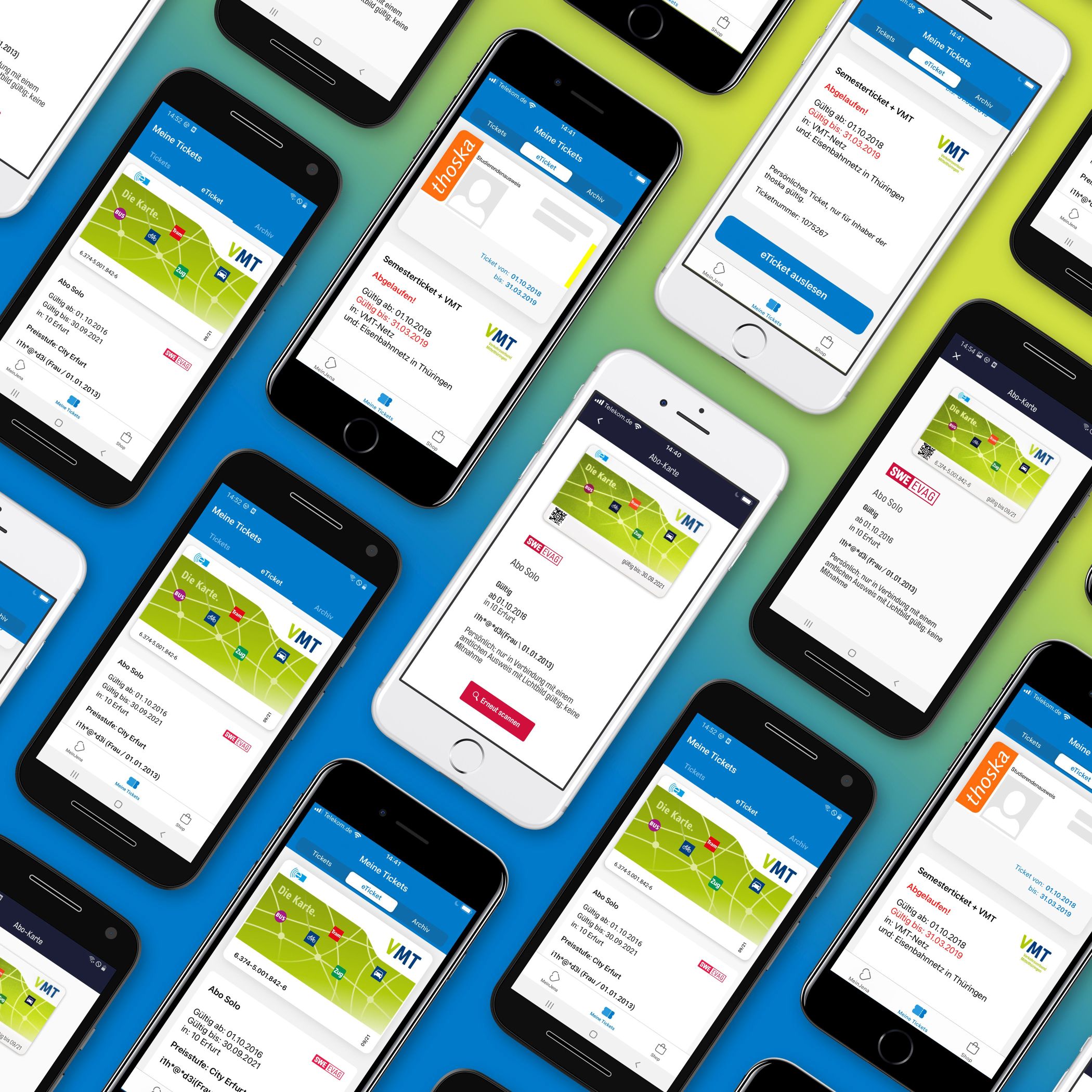 Die App „MeinJena“ kann seit dem letzten Update den Inhalt von Abo-Chipkarten des Verkehrsverbundes Mittelthüringen (VMT) und Studierendenausweisen (thoska) per NFC auslesen und anzeigen. Die NFC-Funktion für Abo-Chipkarten ist auch in der iPhone-Version der App „Erfurt mobil“ ergänzt worden.